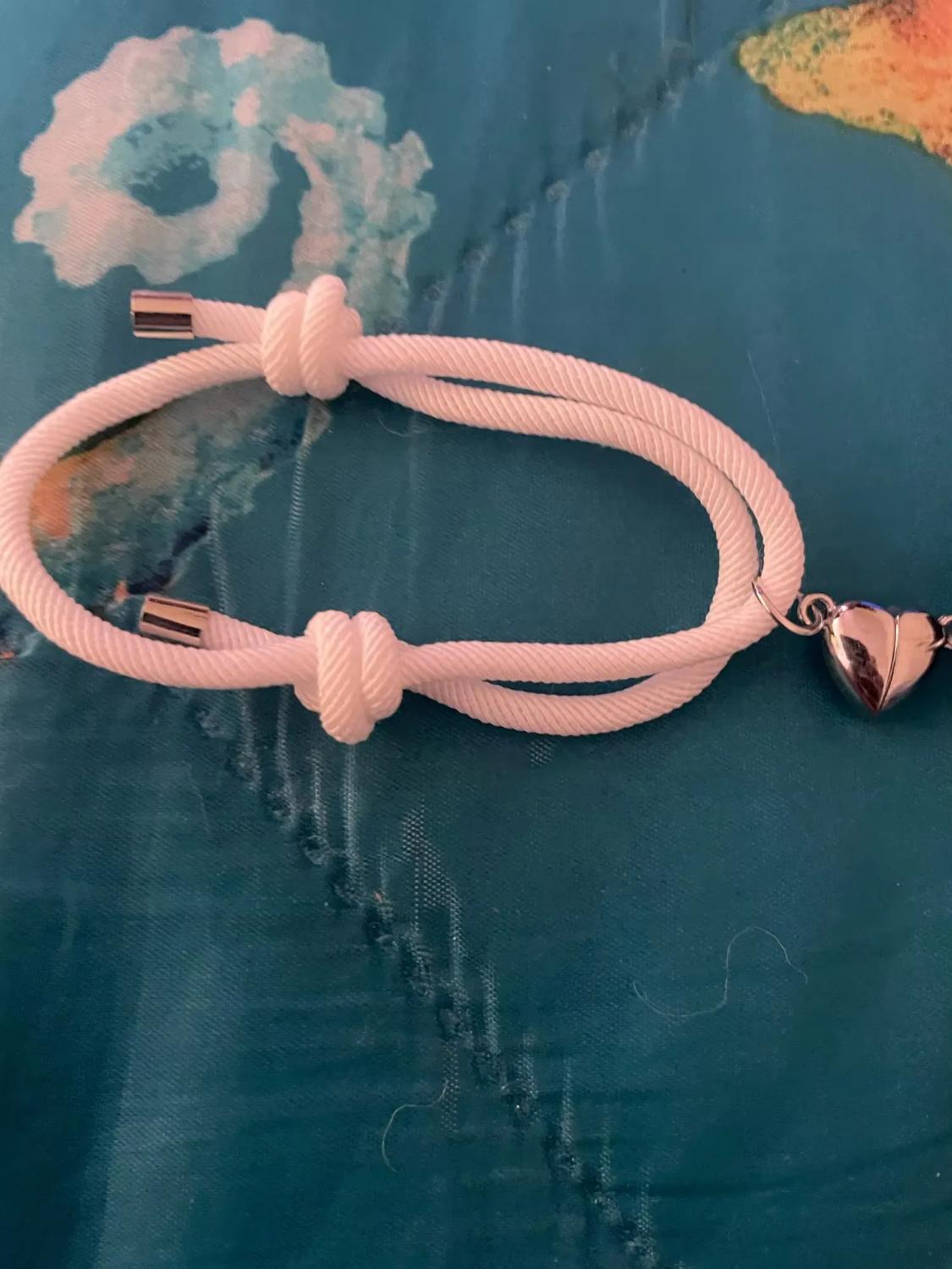 These bracelets were a gift for my best friend and me. We both love the thoughtful design and symbolism. The magnetic charm creates a bond that's truly special. Fashionable, durable, and adjustable, they're perfect for those who want to carry a piece of their friendships everywhere.